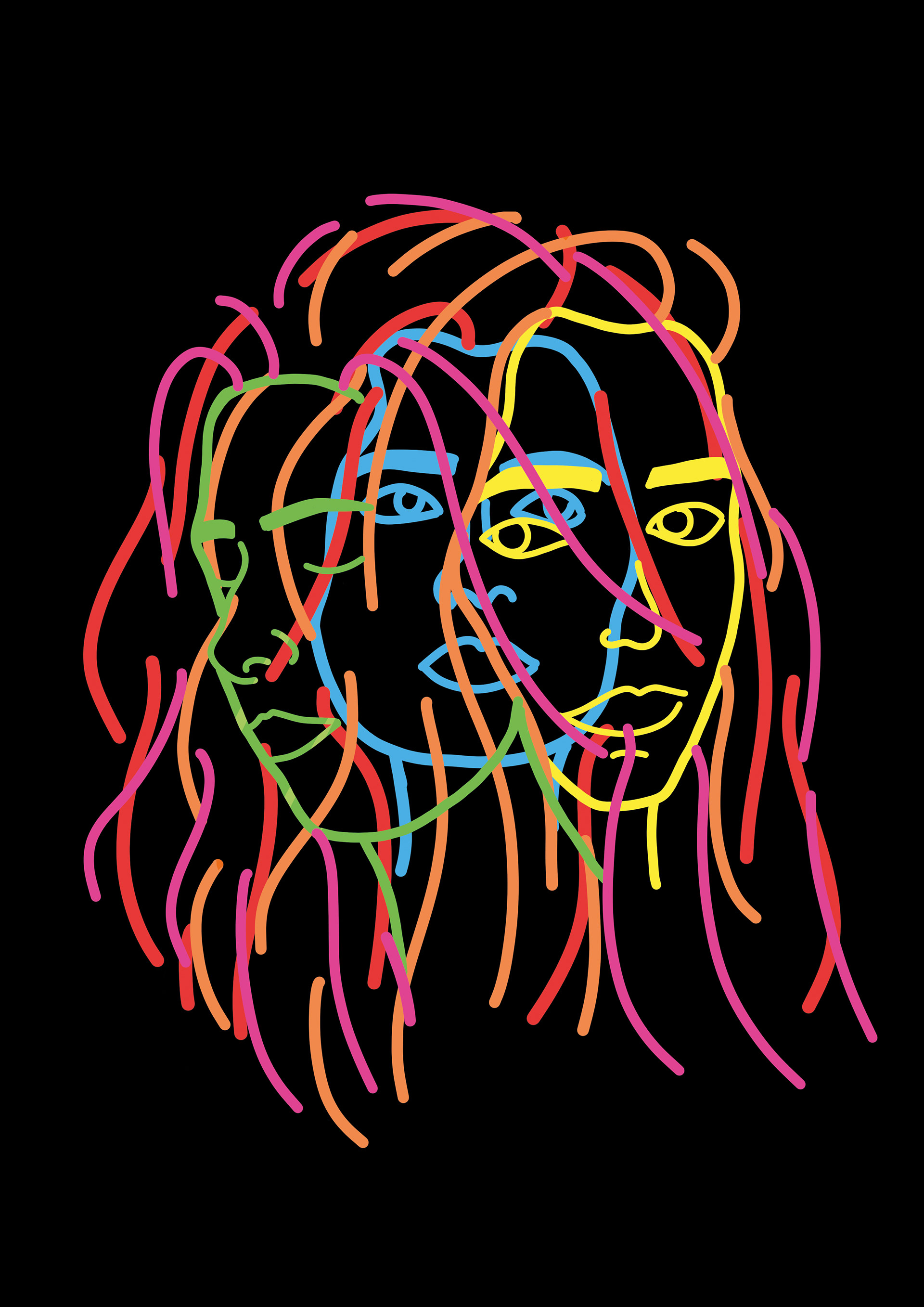 Travail sur des portraits numériques colorés. Utilisation de la couleur comme outil d'abstraction, il s'agit de simplifier le dessin et les lignes et de faire passer les émotions et la personnalité par les couleurs.